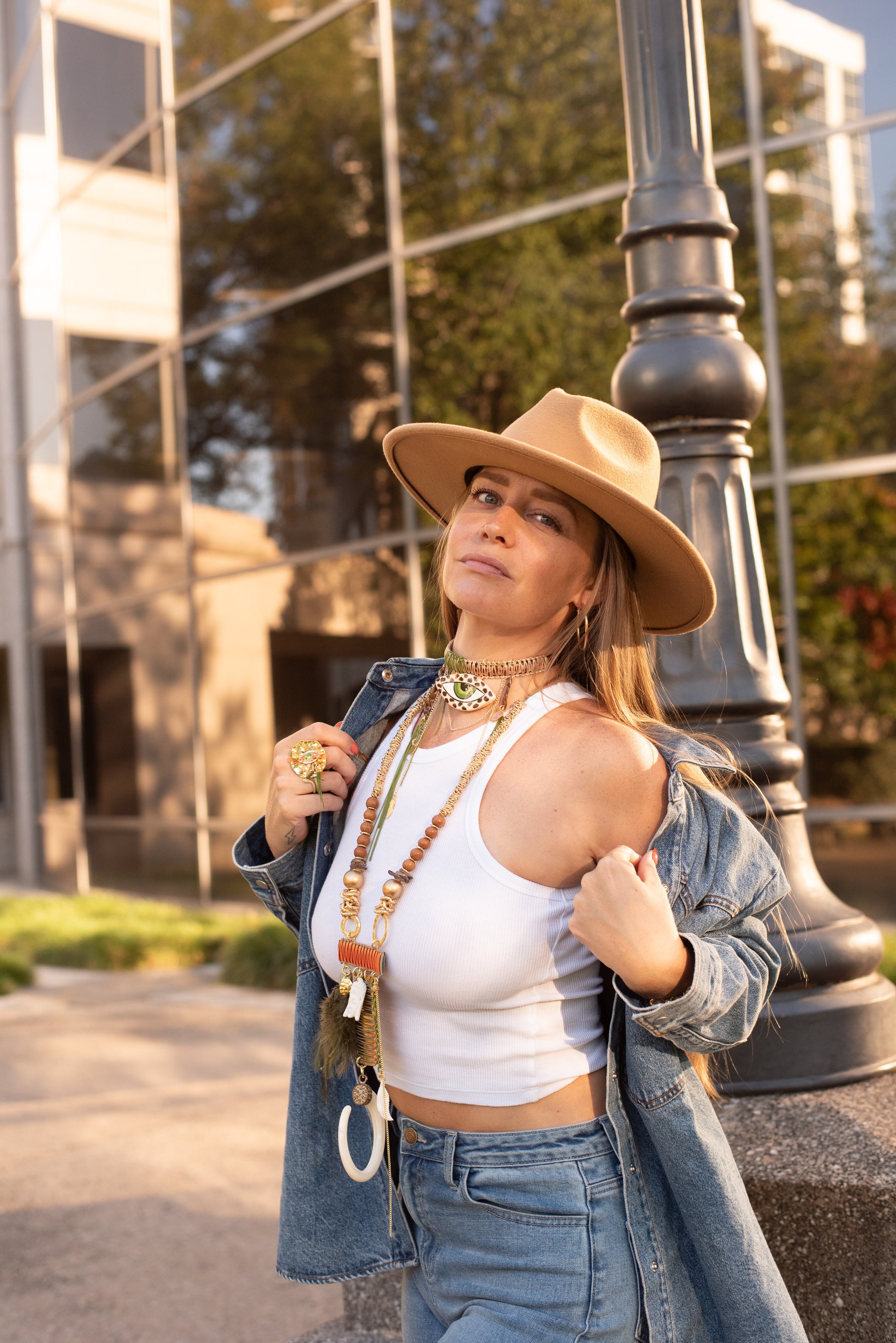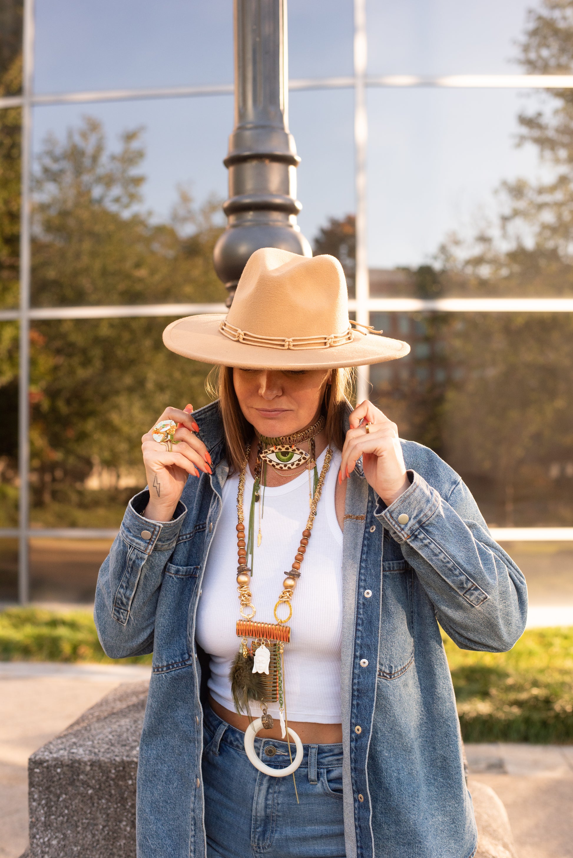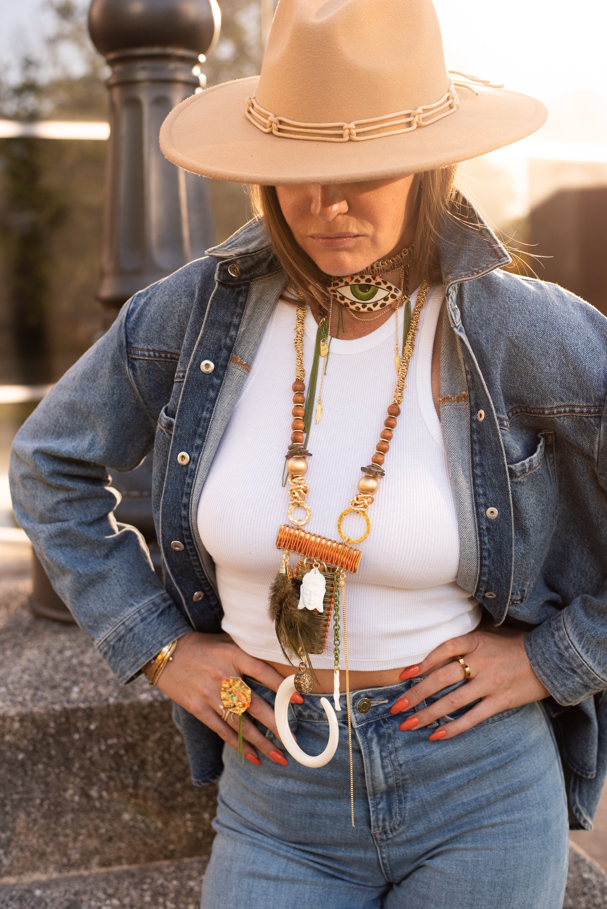 Worn alone, it is breathtaking. Paired with one of our handcrafted chokers, it creates an amplified, couture-like silhouette unmatched by anything else you will see. This is jewelry for the woman who leads with confidence, creativity, and a sense of her own sacred expression.