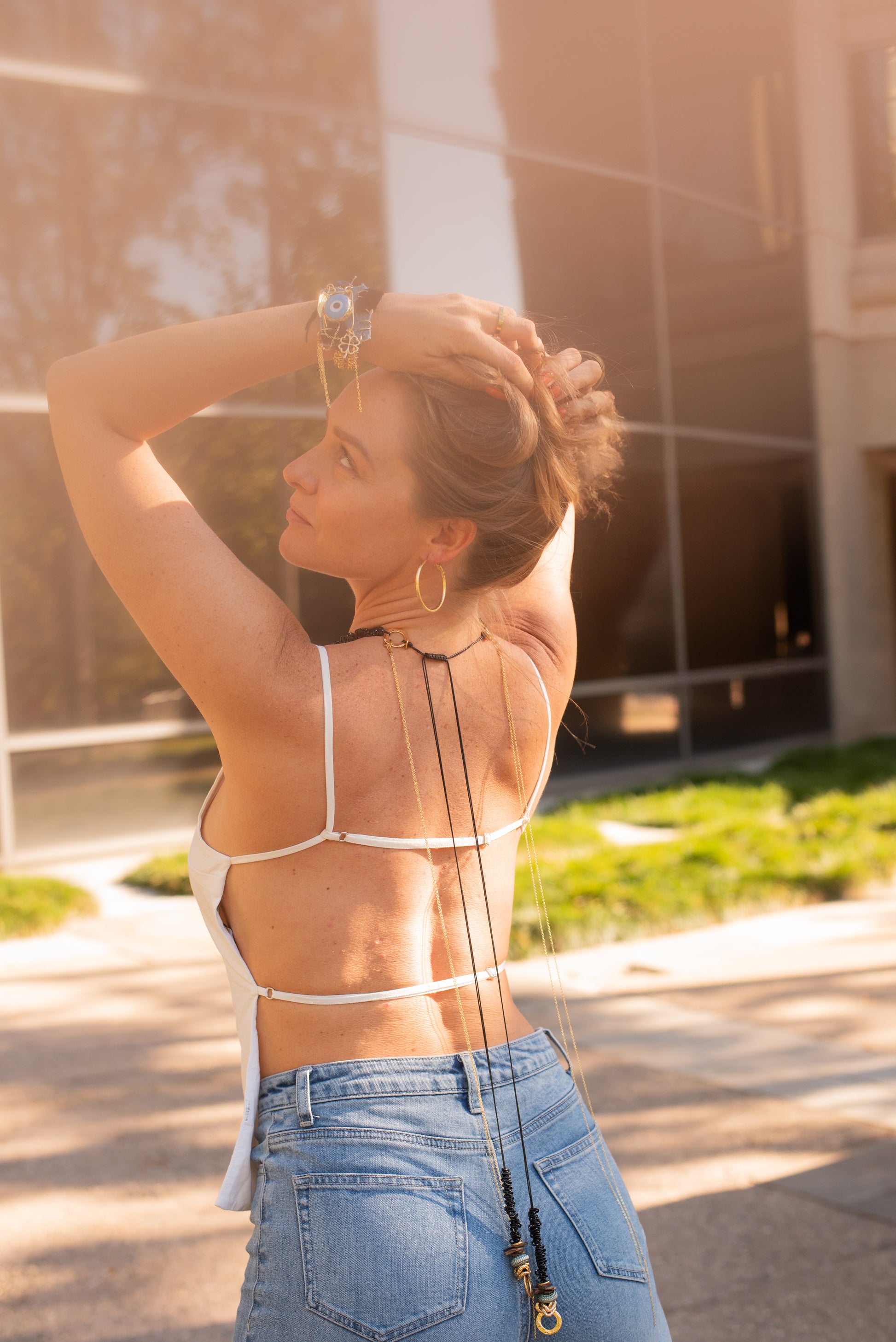 This striking piece from our Denim Collection blends creativity, symbolism, and bold design into a necklace that feels both modern and timeless. Centered around our recognizable hand-painted ceramic evil eye, the pendant offers a sense of protection and presence — a guiding symbol worn close to the heart.
